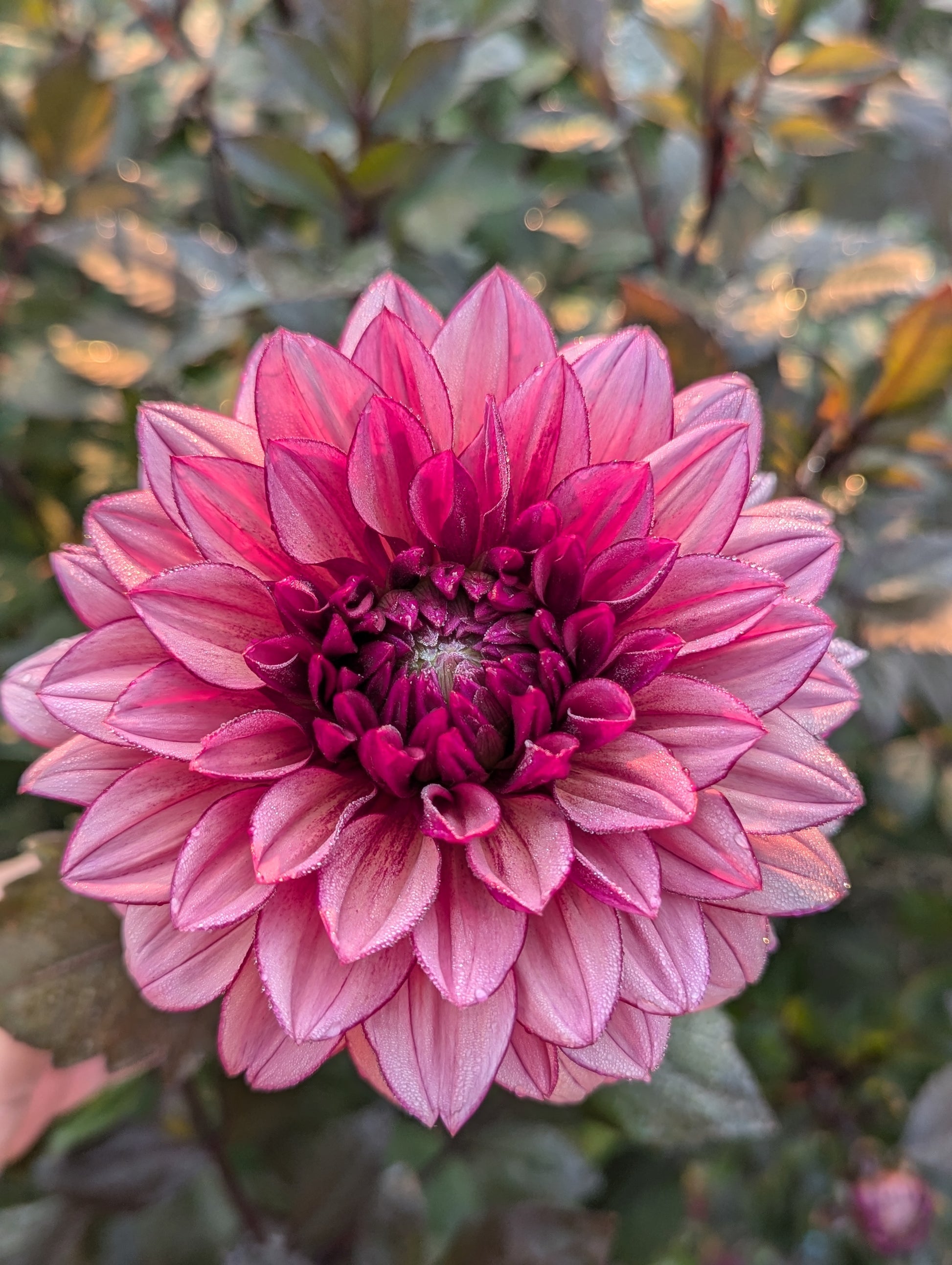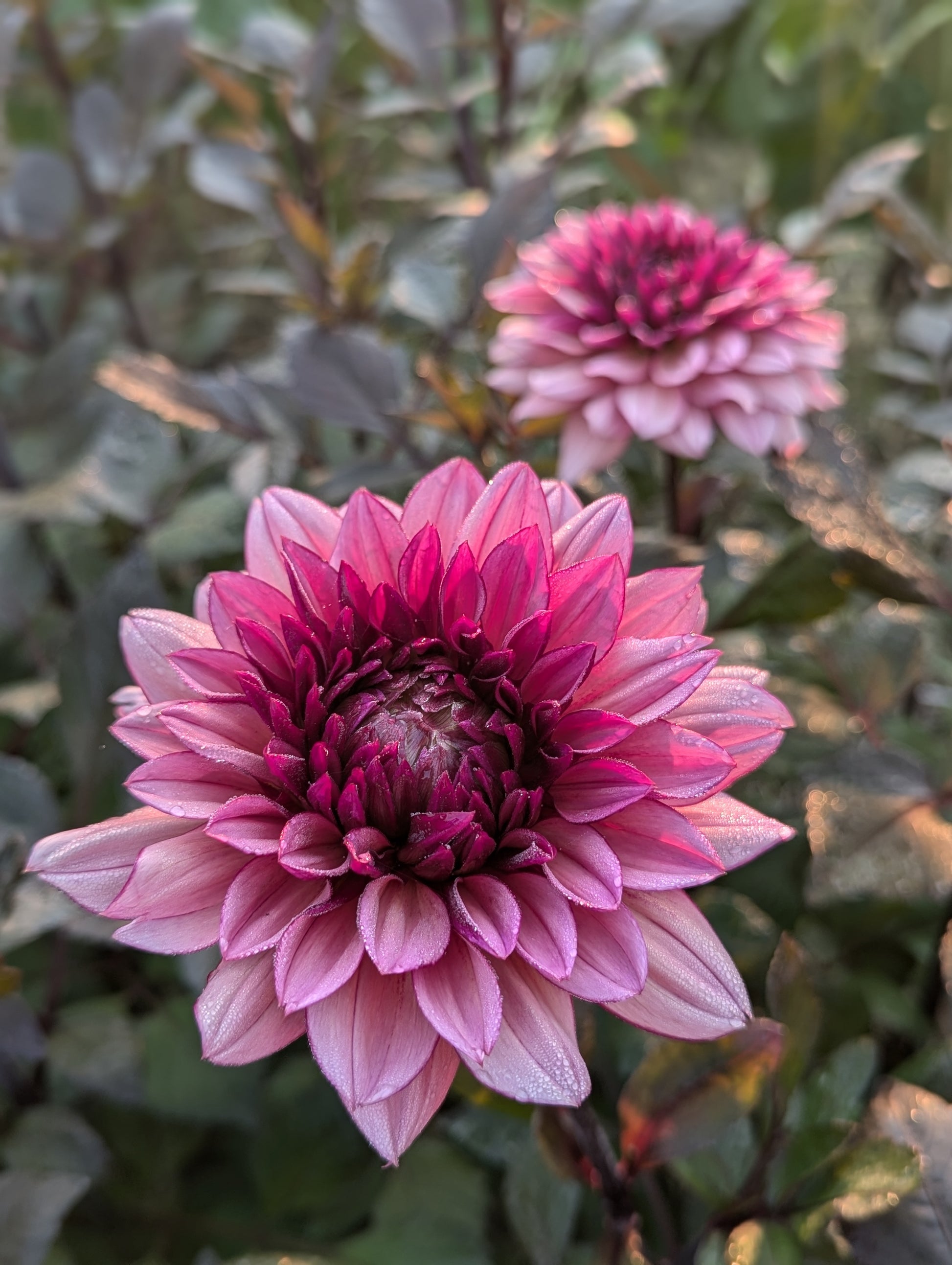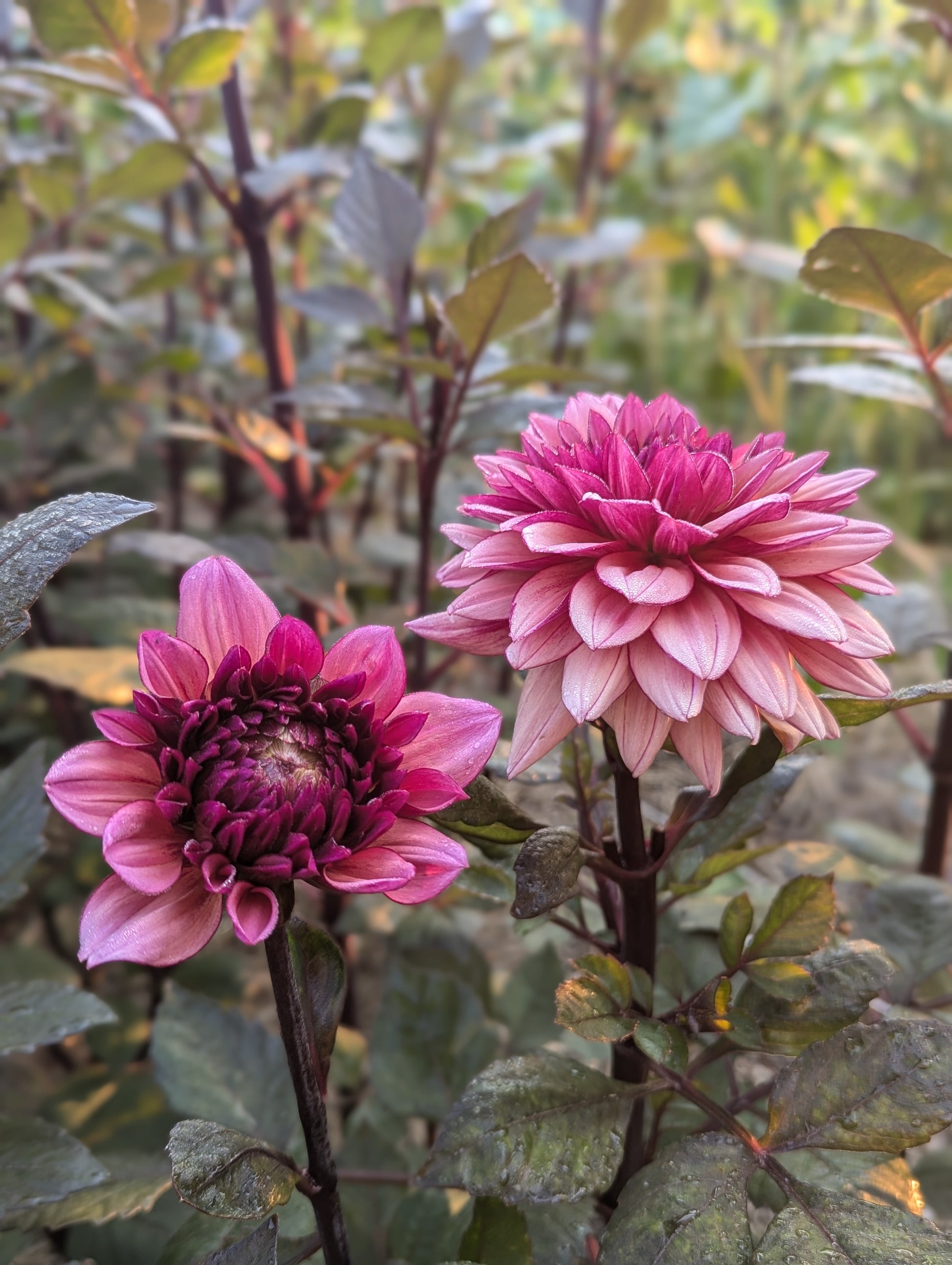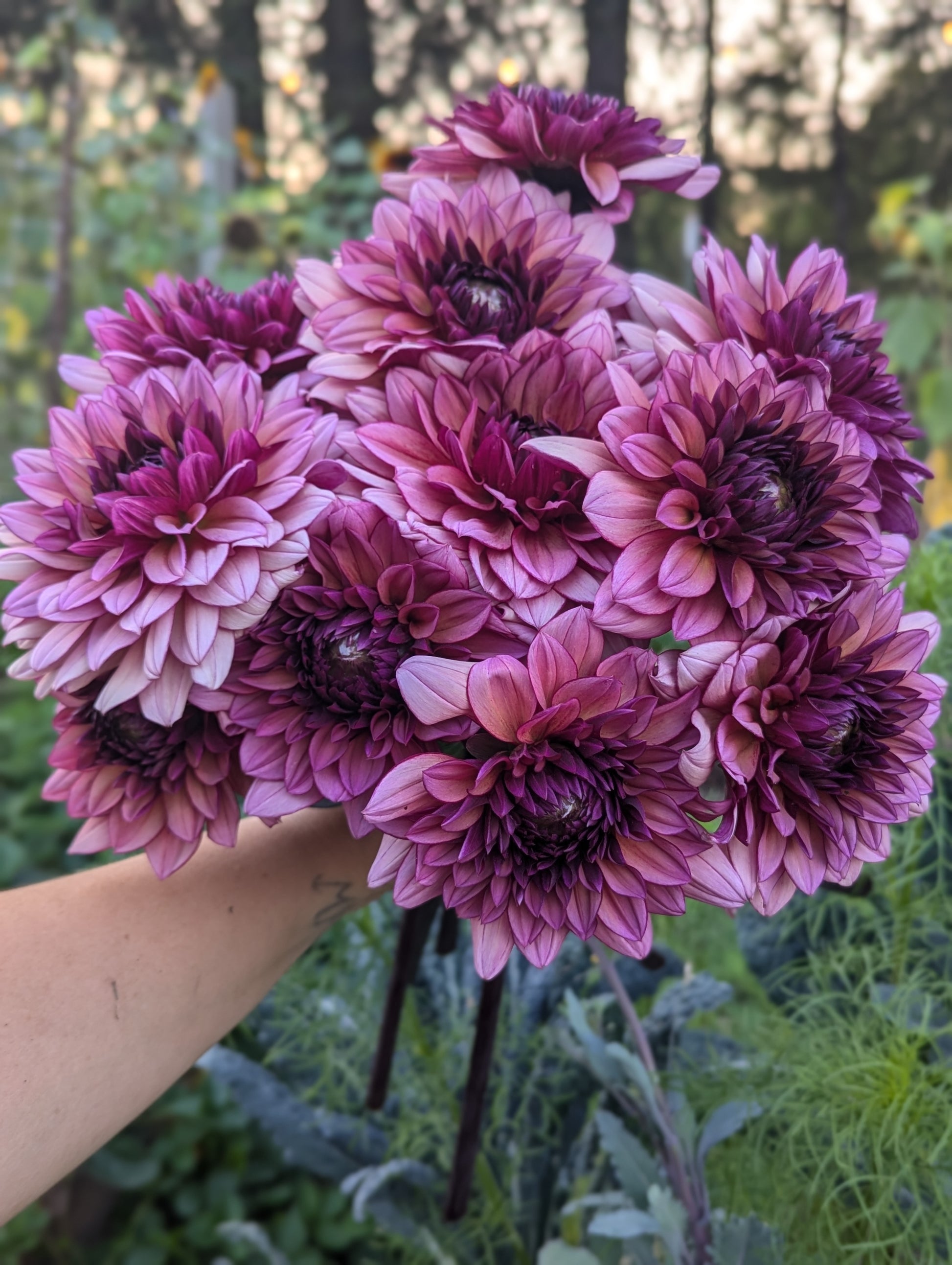 Molly Raven is hard to describe. A glowing 4" raspberry pink decorative bloom that ages to a light raspberry-coffee color. Very dimensional. The blooms truly do glow atop their contrasting sturdy, dark stems and foliage on a plant that topped out around 4' in our field. Molly fit excellently in to many floral arrangements palettes and served as an excellent bridge between color families as well as the perfect choice to transition from summer to fall.